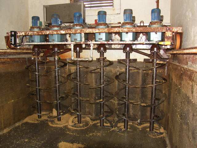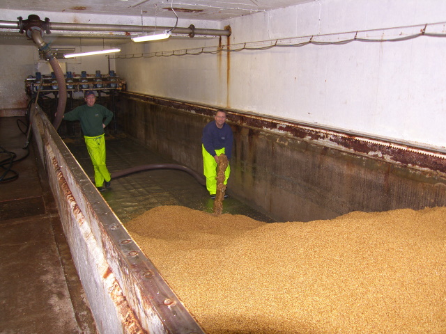 einleiten zu können. In langen Betontrögen wird die Gerste durch