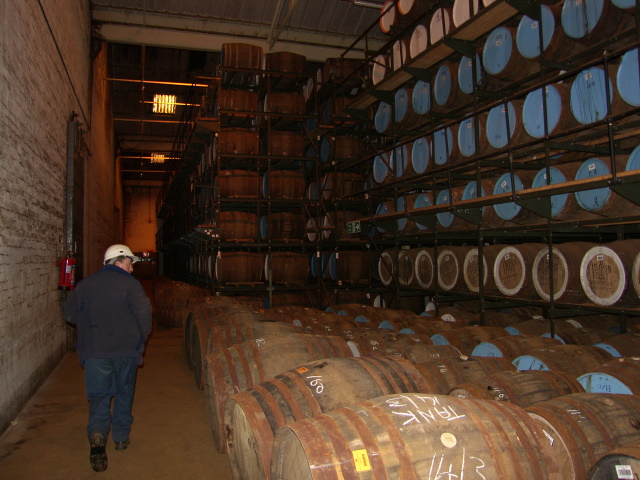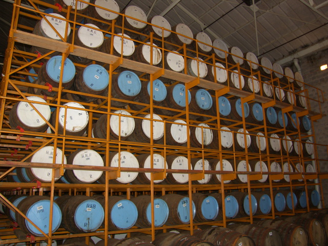 Die Fässer liegen in Lagerhäusern, die „warehouses“