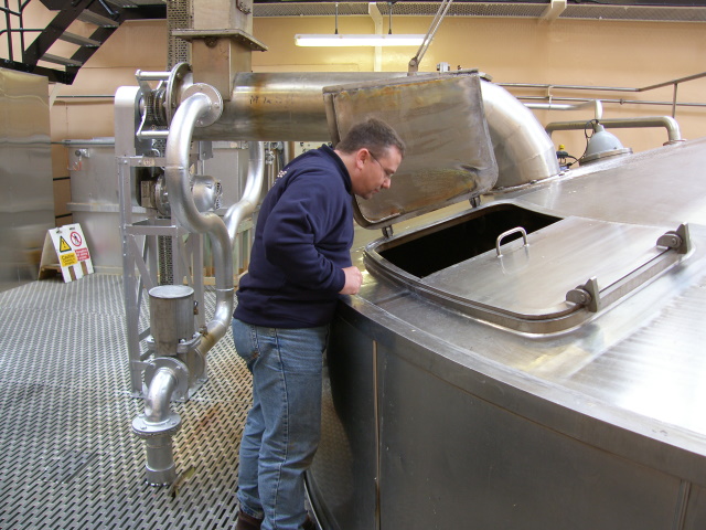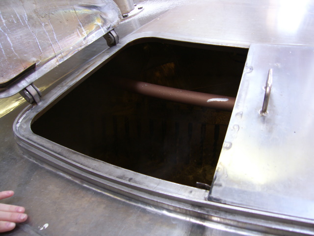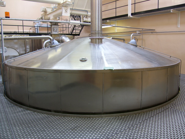 sind aus Edelstahl und Holz. In sie wird die Würze aus den Maischetonnen