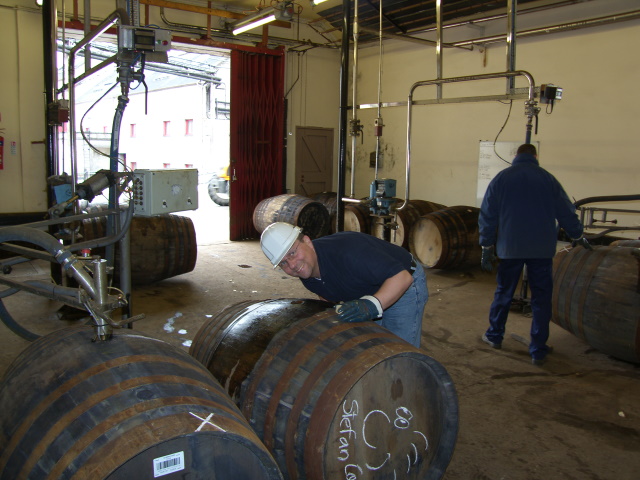 eigenen "Tankstelle" Dort werden die Fässer mit dem Destillat