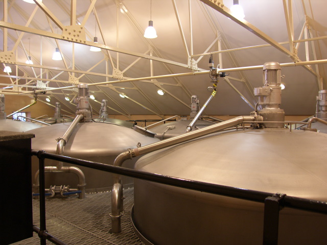 gepumpt und dann mit Hefe zugesetzt um die Vergärung in Gang zu setzen.