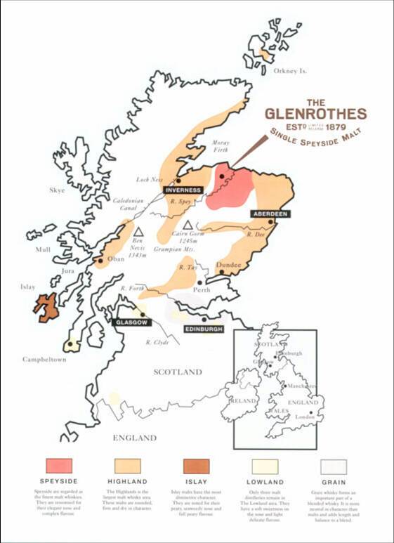 DIE SPEYSIDE REGION Das Gebiet, aus dem die schottischen Malt Whiskys stammen, unterteilt sich in folgende übergeordnete Regionen: die Lowlands, die Highlands und die Islands. Darunter gibt es in dem großen Gebiet der schottischen Highlands, welches sich von Inverness bis Aberdeen erstreckt, weitere, feinere Herkunftsabstufungen. Das Gebiet um den Fluss Spey, Speyside genannt, gilt gemeinhin als dass Kernland der Malt‑Destillation und trägt daher eine eigene Klassifikation. Speyside dehnt sich, dem Lauf vieler kleinerer Flüsse folgend, vom felsigen Bergland bis hinab in die schottische Hochebene aus. Hier fließt das aus den Bergen kommende, kristallklare Wasser der Flüsse durch eine kühle, sehr fruchtbare Landschaft. Aus ihr stammt auch der Torf, über dessen Feuer das Malz getrocknet wird, was dem Speyside Malt seine typische, zartrauchige Note verleiht. Das kühle, immerfeuchte Klima der Region trägt sein Übriges dazu bei, dass in Speyside während der jahrelangen Lagerung in kleinen Fässern aus amerikanischer oder spanischer Eiche, die komplexesten und elegantesten Malt Whiskys heranreifen. wenn sie auf das Bild klicken werden sie zu multimap weitergeleitet